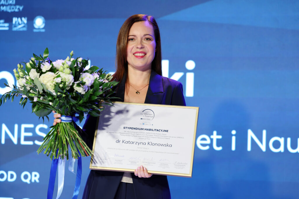 Stypendystki 24. edycji programu L’Oréal-UNESCO Dla Kobiet i NaukiStypendystki 24. edycji programu L’Oréal-UNESCO Dla Kobiet i Nauki z Przedstawicielami Partnerów programuJustyna Jakubska, Stypendystka w kategorii magistranckiejmgr inż. Hanna Orlikowska-Rzeźnik, Stypendystka w kategorii doktoranckiejmgr Maja Szymczak, Stypendystka w kategorii doktoranckiejdr Katarzyna Klonowska, Stypendystka w kategorii habilitacyjnejdr Alicja Mikołajczyk, Stypendystka w kategorii habilitacyjnejdr Zuzanna Świrad, Stypendystka w kategorii habilitacyjnejGala 24. edycji programu L’Oréal-UNESCO Dla Kobiet i NaukiÉtienne de Poncins, Ambasador Francji w PolsceDariusz Wieczorek, Minister Naukiprof. Michał Kleiber Przewodniczący